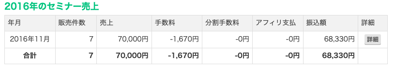 7万円の売上で、1,670円の決済手数料ですね。これで、クレジットカード決済もできて、銀行振込の処理もしてくれて、募集管理も何もかも一括管理できるので、コスパがいいと感じました。