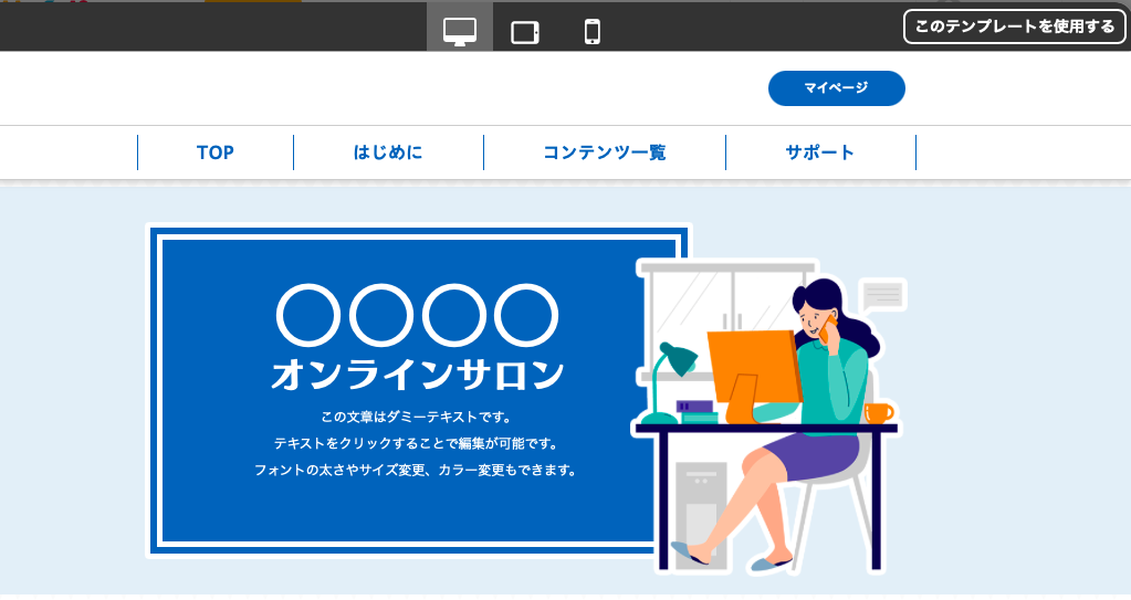 エキスパでは↑こんな感じのテンプレートがあります。オンラインサロンの会員サイトも簡単に無料で作れます。