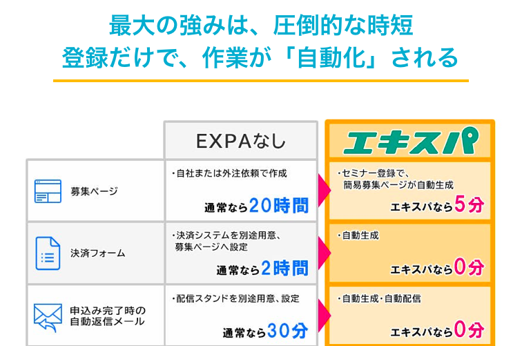 セミナー開催に必要な一連の事務作業を超簡略化、自動化することができます。